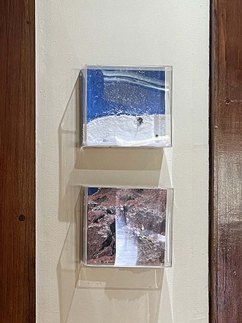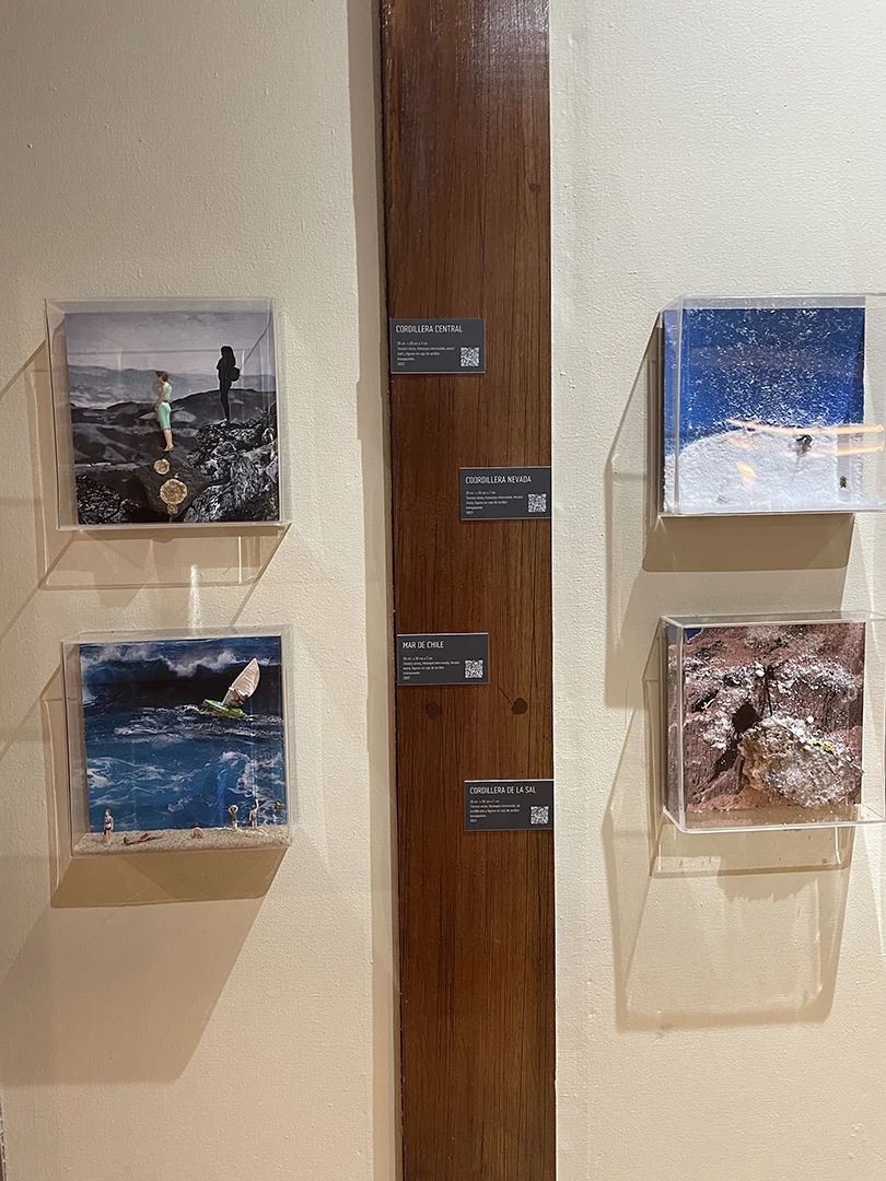 En las Cajas Acrílicas podemos ver una intervención de fotografías que junto a diversos personajes, materiales y técnicas representan distintos lugares de Chile, como el norte con su cordillera de la sal, el centro con nuestra cordillera central, los centros de esquí nevados y el mar chileno.