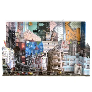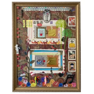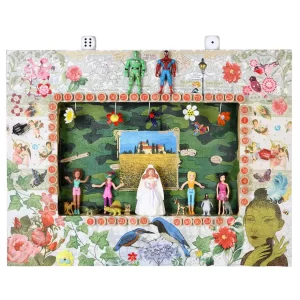 | Materialidad | Encuentro de varios materiales: papeles, juguetes, personajes, objetos, elementos recolectados que forman parte de un todo. |