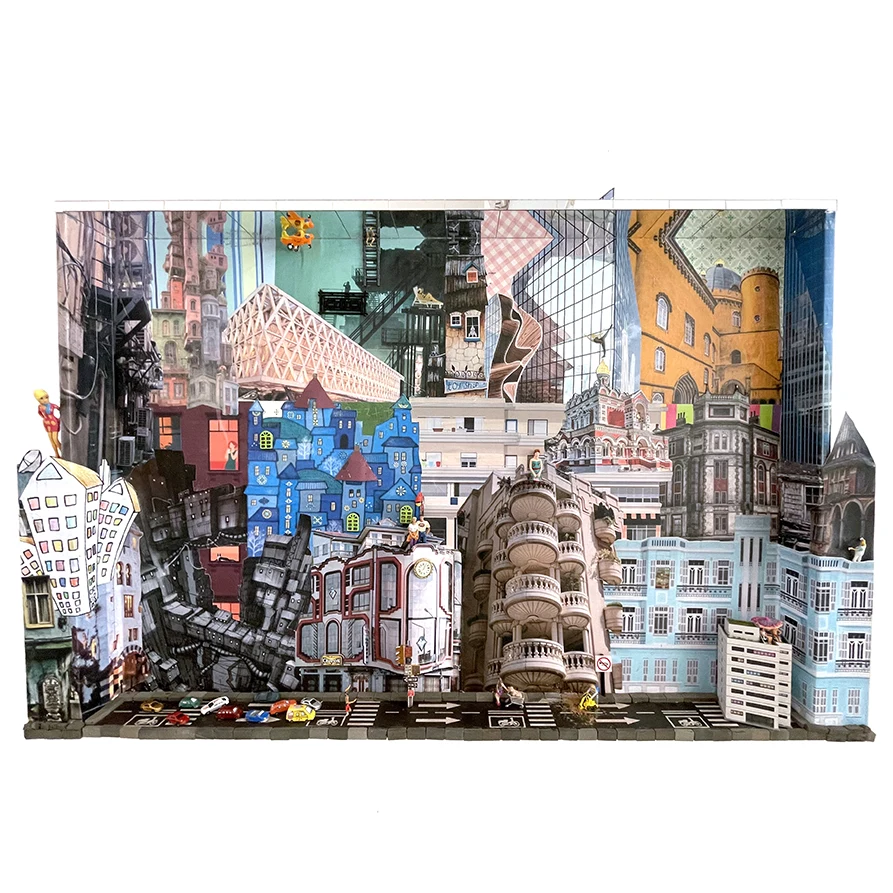 | Materialidad | Collage, fotocopias a color, figuras pintadas |