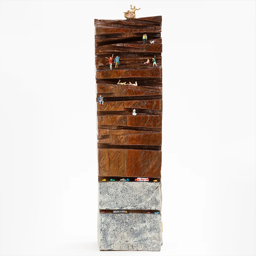 Materialidad Base de Madera natural intervenida con resina, pintura, y figuras.