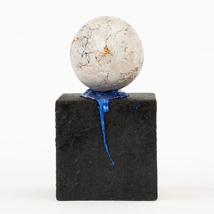 | Materialidad | Figura sobre greda pintada sobre silicona pintada en base de madera intervenida |
