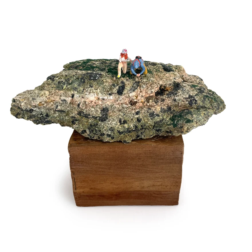 | Materialidad | Piedras y figuras sobre base de madera de pino terciada intervenida. |