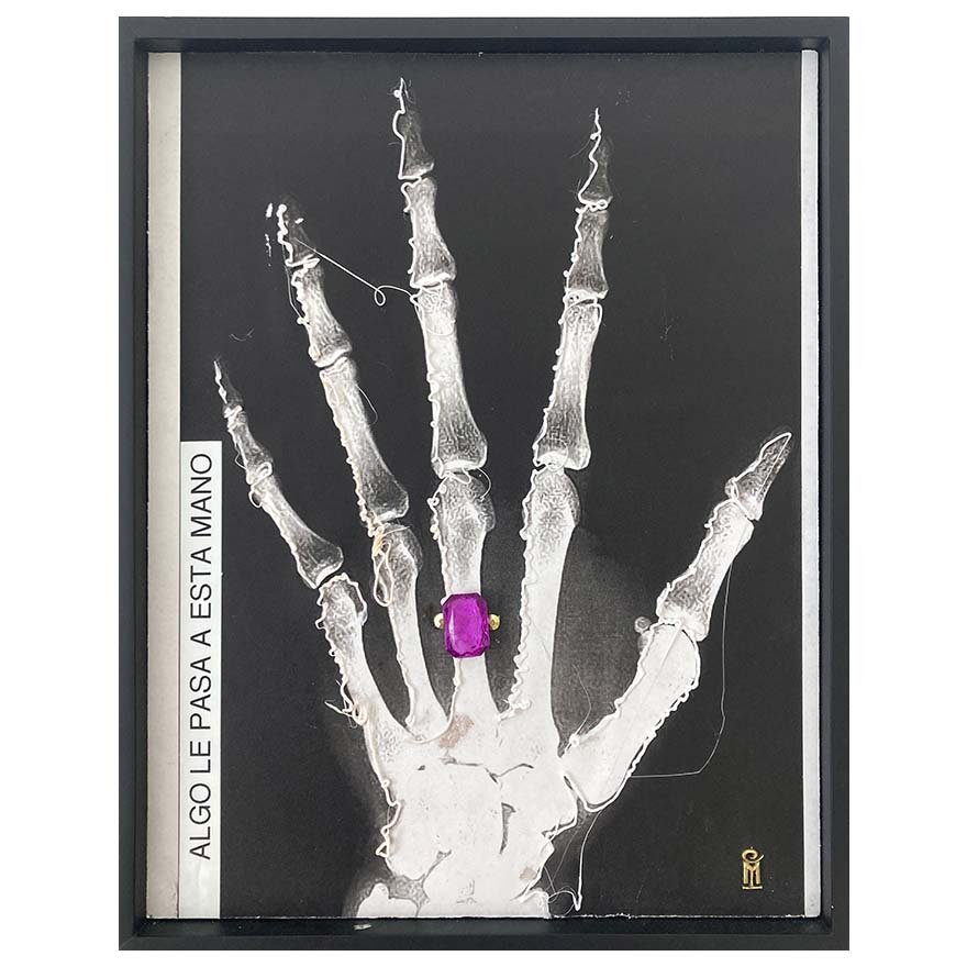 | Materialidad | Fotocopia intervenida con distintas materialidades y resina transparente. |