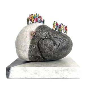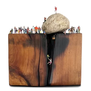 | Materialidad | Figuras pintadas y piedra sobre base de madera. |