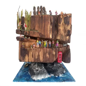 | Materialidad | Figuras pintadas, elementos, resina teñida, tecnica mixta. |