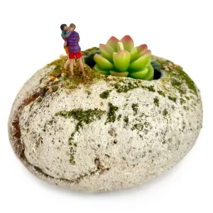 | Materialidad | Figuras pintadas sobre piedra pulida + vela |